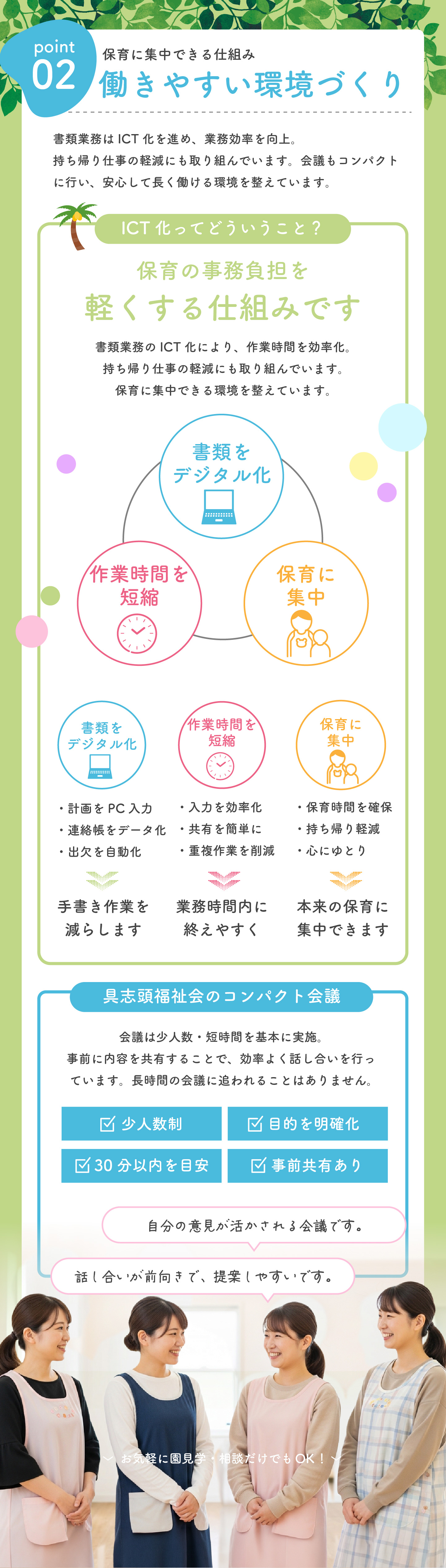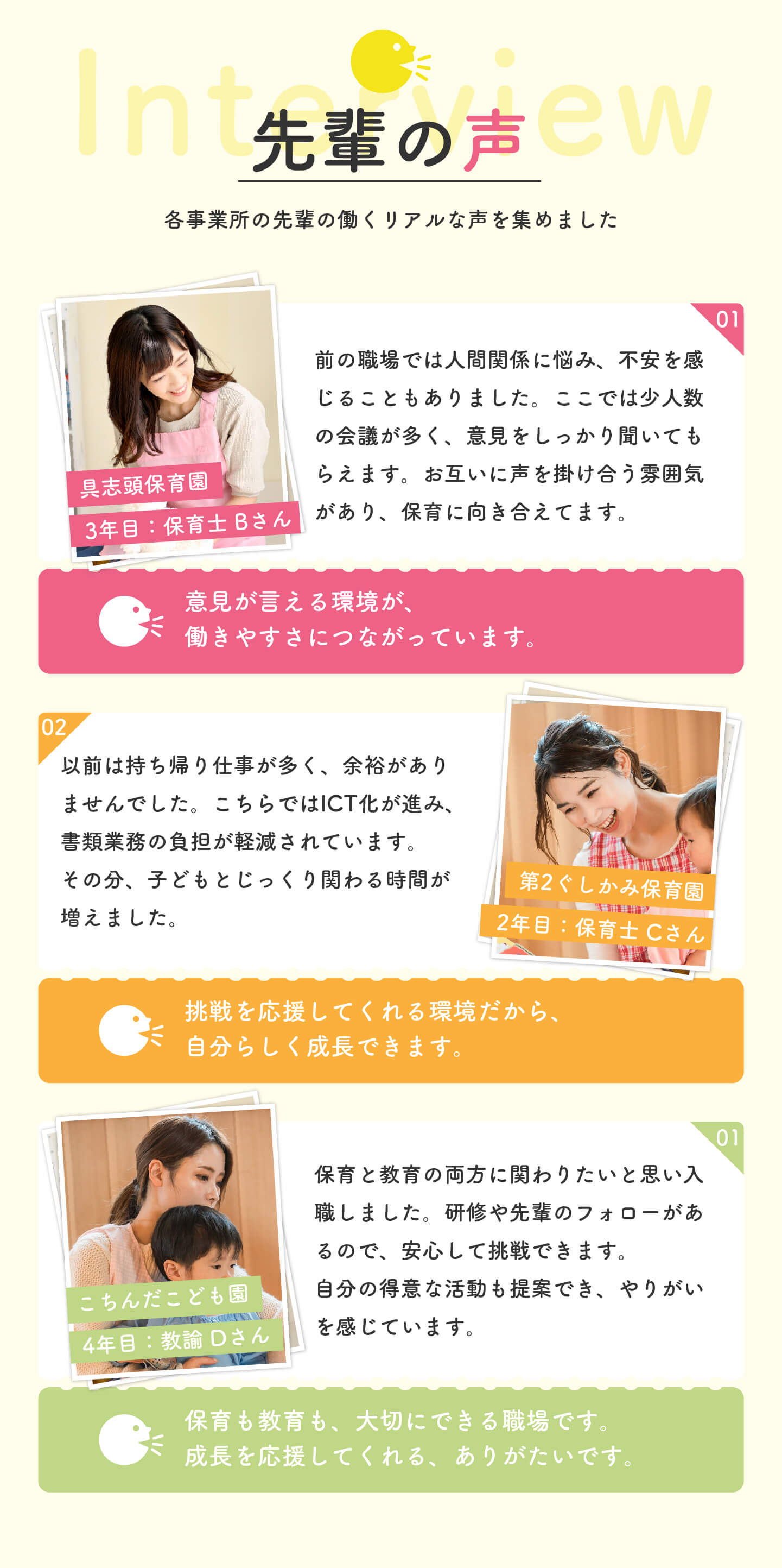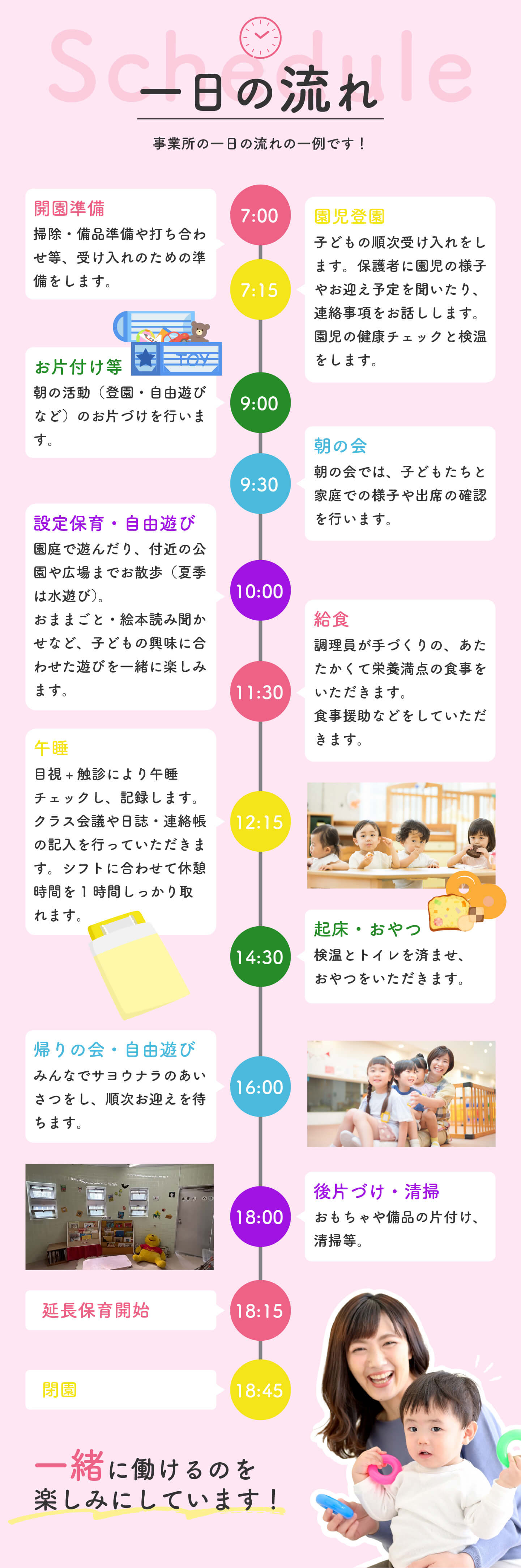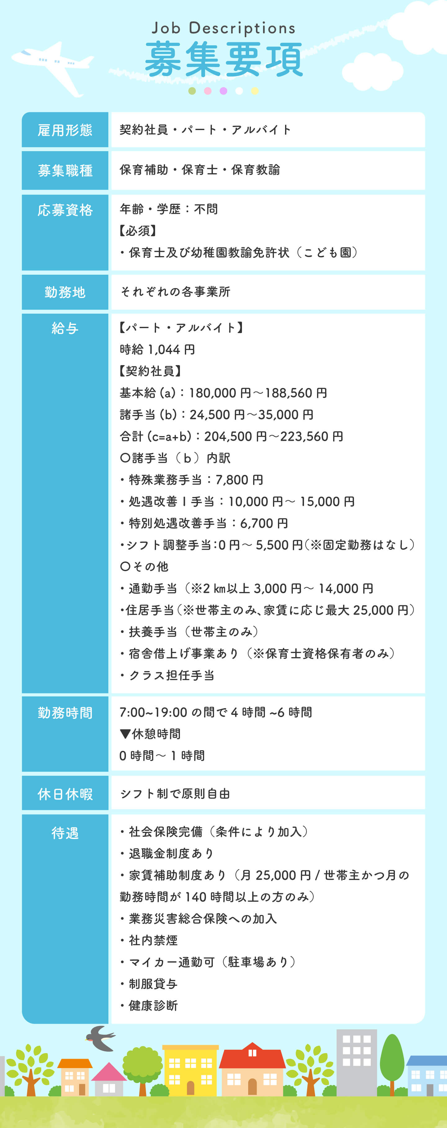 | 事業内容 | ・保育所の経営 ・認定こども園の経営 ・放課後児童健全育成事業の経営 |